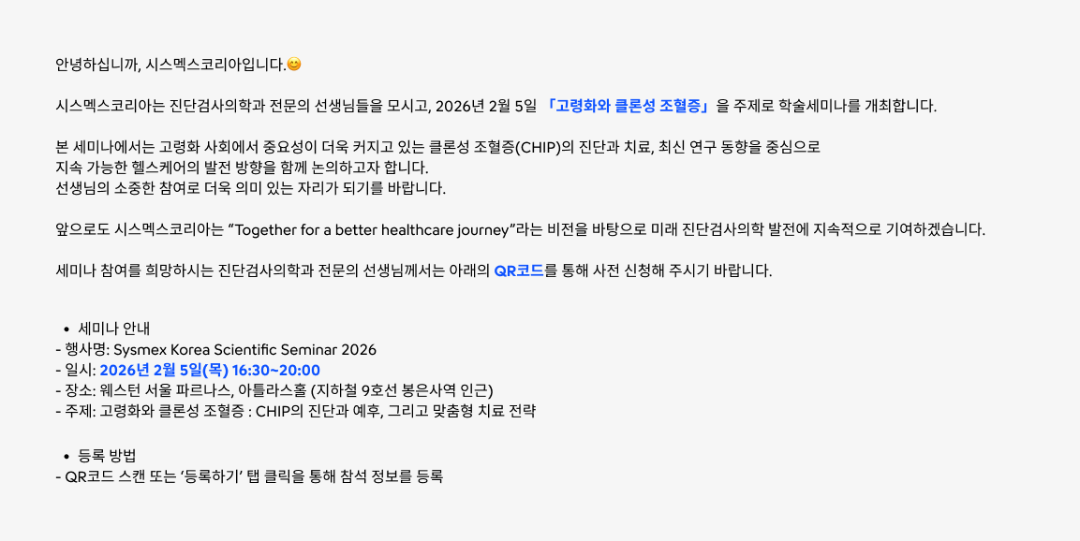 Sysmex Korea Scientific Seminar 2026