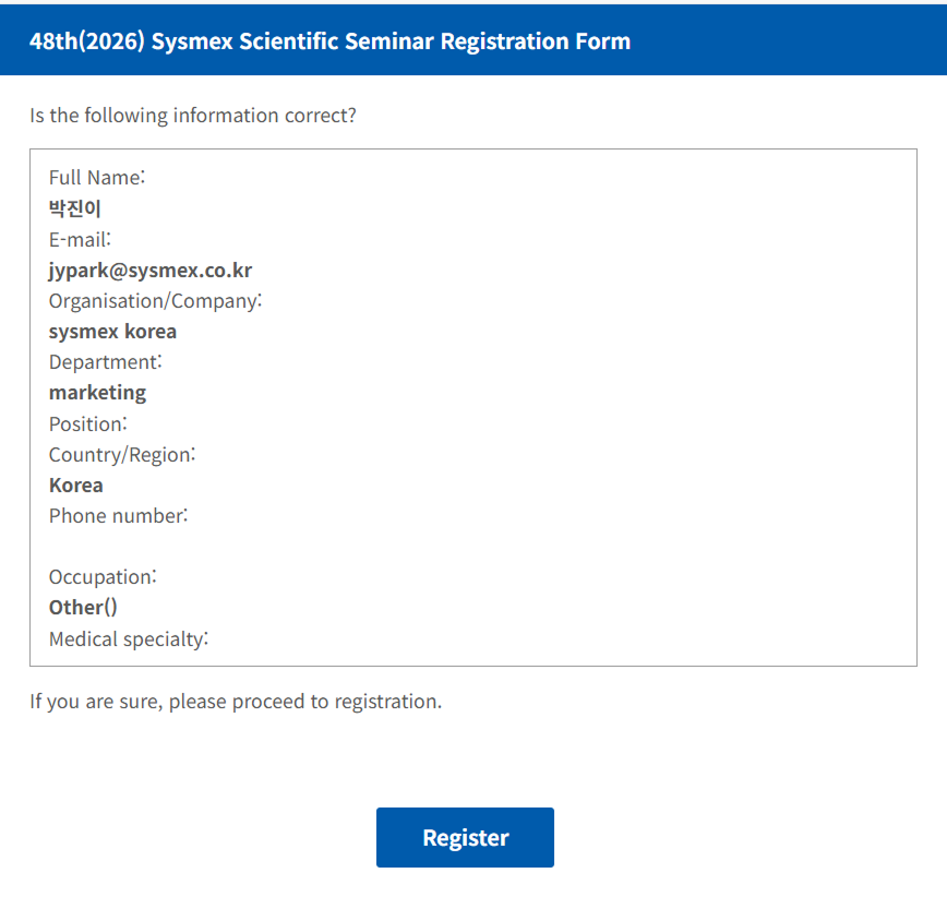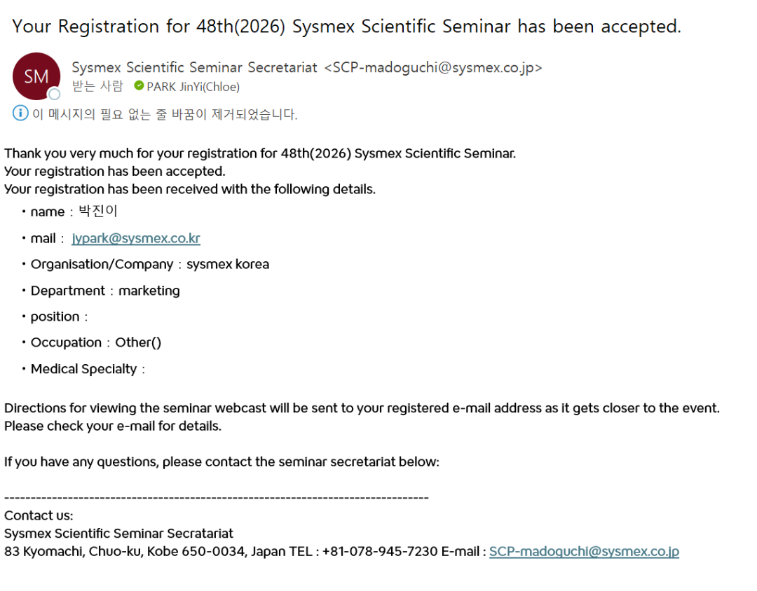 관련하여 문의사항이 있으실 경우 sysmex-marcom@sysmex.co.kr로 연락 바랍니다.