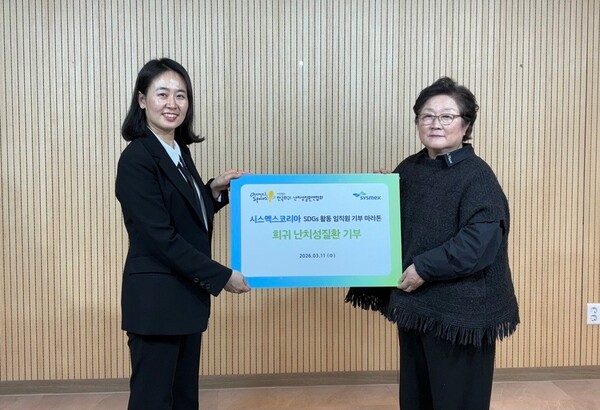 글로벌 체외진단 기업 시스멕스코리아(Sysmex Korea)가 임직원 참여형 SDGs 활동을 통해 마련한 기부금을 3월 11일 (사)한국희귀·난치성질환연합회(이하 연합회)에 전달했다고 밝혔다.